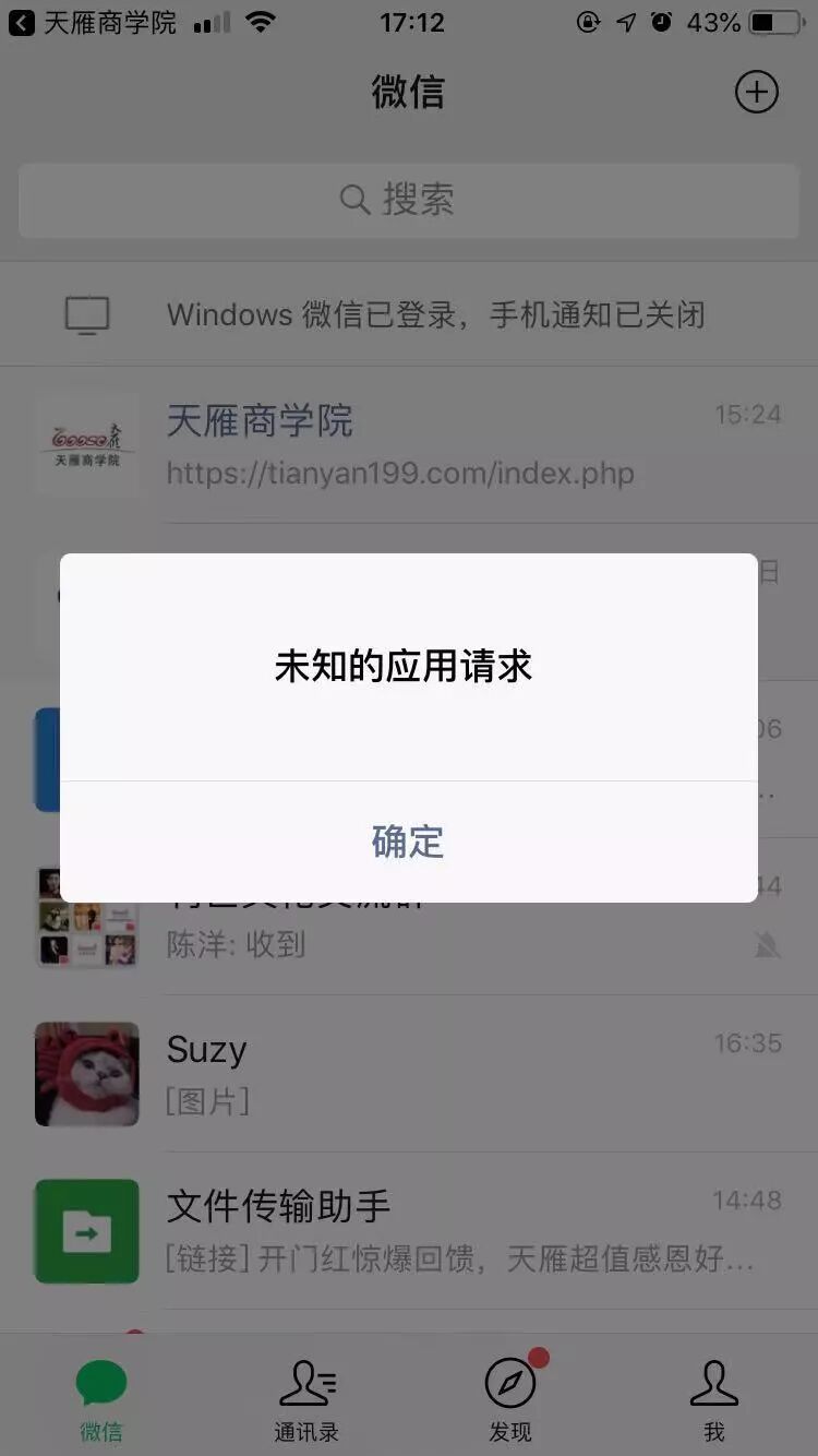 ios微信版本号7.0.4 同个应用登陆成功 ios微信版本7.0.8 同个应用 提示 未知应用请求,如何解决