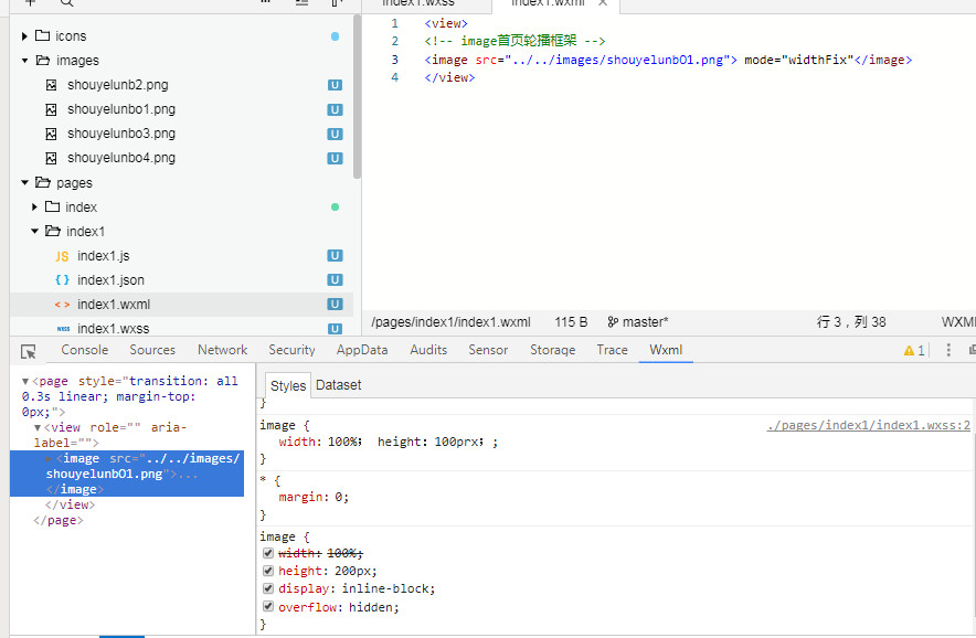 选用widthfix这个标签 图片应该是 宽度填满屏幕,高度自动变化,我这边选用后没有变化是什么原因,在styles栏 image 宽度width 有划线是什么原因