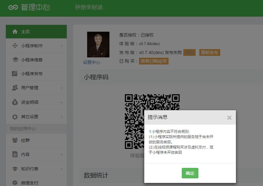 知乎live、蜻蜓FM、头脑王者,包括腾讯视频的小程序中都涉及虚拟支付,都可以正常的使用呀。现在很多产品都有知识付费的支付,小程序关于虚拟支付的标准到底是什么?小程序的APPID是:wxc6012253505fedfd现在提交一直通过不了审核,小程码是: