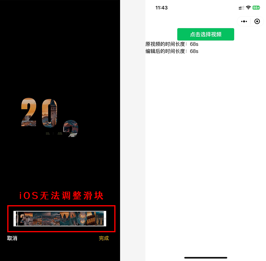 iOS在使用wx.openVideoEditor编辑视频,设置maxDuration属性无效。