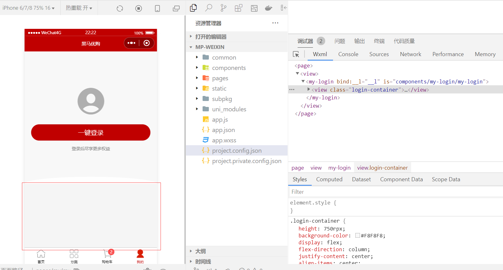 页面的 .wxss 代码 page: { background-color: #000000; }