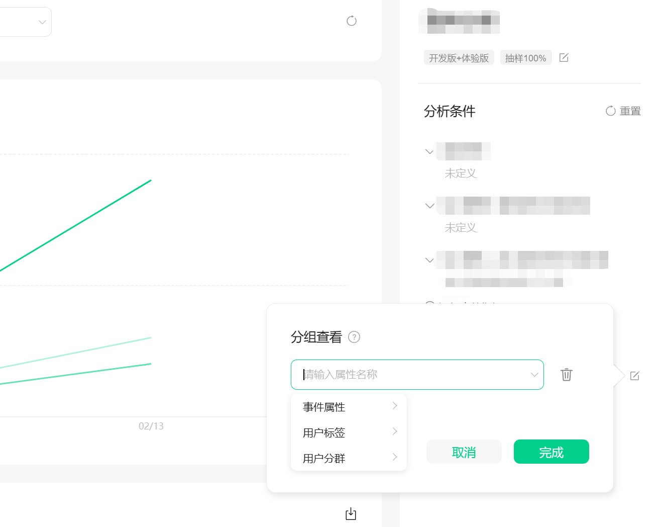 多事件分析时,【分组查看】里的事件属性需要是每个事件都存在的公共属性。未出现所需属性的原因,可能是其他事件里没有该属性,你可以确认下是否是这个原因。如果不是辛苦再联系我