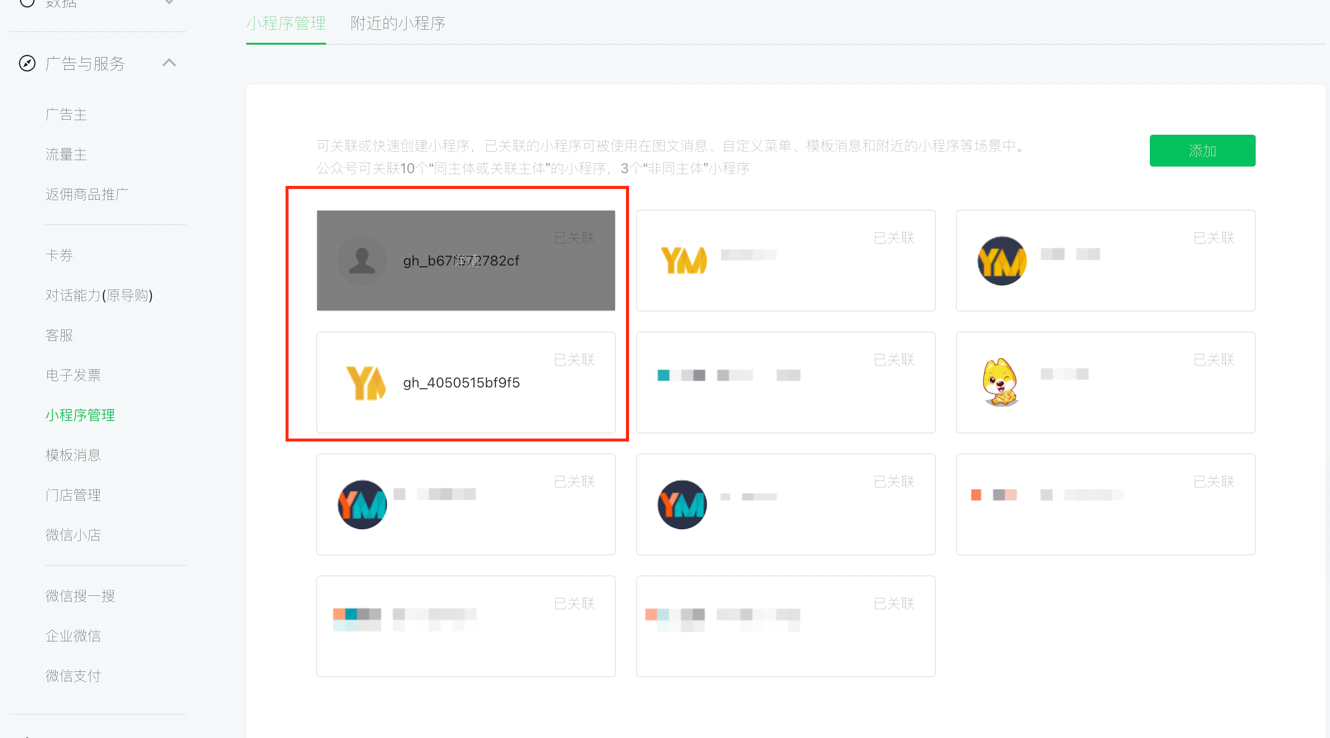 如截图所示,目前公众号下关联的小程序中,有两个小程序状态异常,想将这两个小程序与公众号解绑,请问应该如何操作?