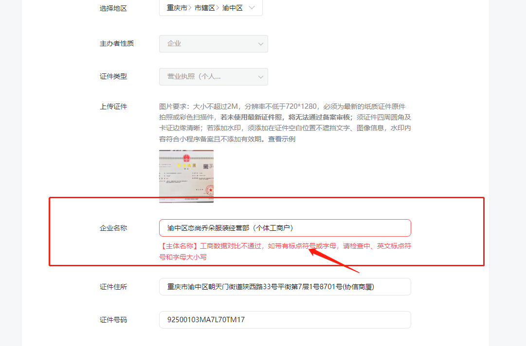 微信同步最新工商信息会有延迟的,从这个日期开始计算,需要等待15个工作日(不包含周六、周日)后再试。或者(已备案的)等待小程序通知你主体名称存在变更,需要更新备案信息后再试。