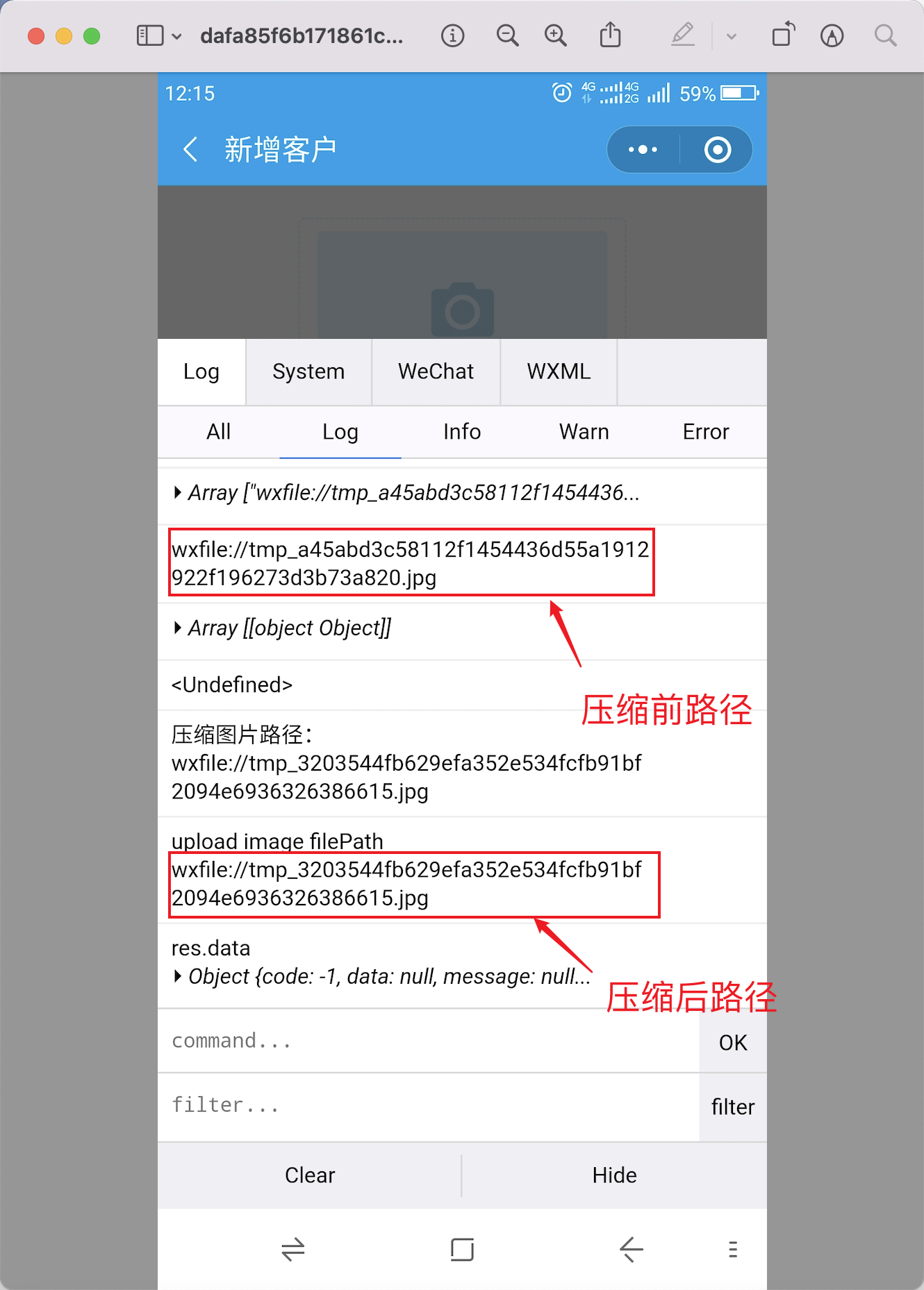 360手机 N6 Pro,iPhone 8 Plus(MQ8F2CH/A),使用wx.chooseImage拍照,wx.compressImage压缩图片后调用wx.uploadFile报错,在wx.uploadFile的success回调里拿到了上传报错信息,没有走fail回调。其他机型未发现问题。