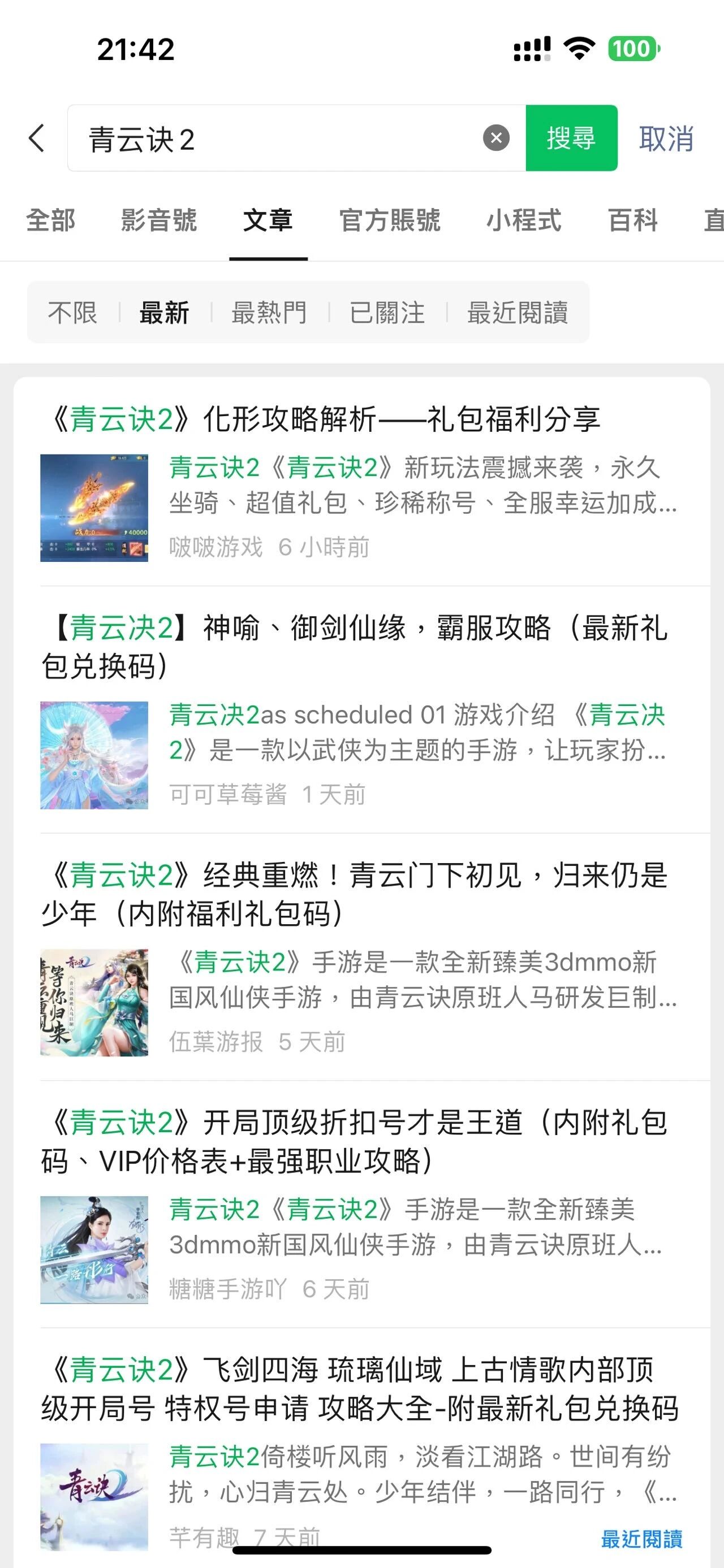 微信公众号:仙侠手游探索者 原始ID:gh_643499248692 例如文章:官宣!李诺彤代言《青云决2》——最新攻略 内部特权号 顶级开局号申请通道(附礼包兑换码) 原文链接:https://mp.weixin.qq.com/s?__biz=MzkxODY0OTE4OA