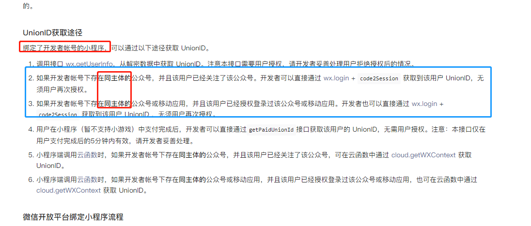 已参考官方文章:https://developers.weixin.qq.com/community/develop/doc/000e0652ed430840e219af88c57809?highLine=%25E4%25B8%25BB%25E4%25BD%2593%25E4%25B8%258D%25E5%2590%258C%252C%25E7%25BB%2591%25E5%25AE%259A%25E7%259A%2584%25E5%25B0%258F%25E7%25A8%258B%25E5%25BA%258F%25E8%258E%25B7%25E5%258F%2596%25E5%2588%25B0unionId
