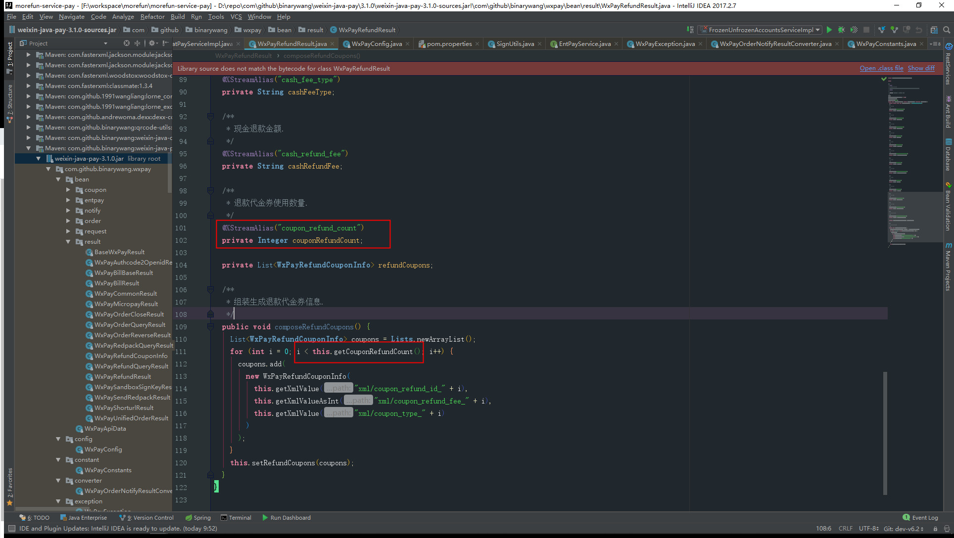 退款回调退款代金券使用数量字段可以为空 回调时这个字段是null就会导致 i < this.getCouponRefundCount(); 报空指针异常