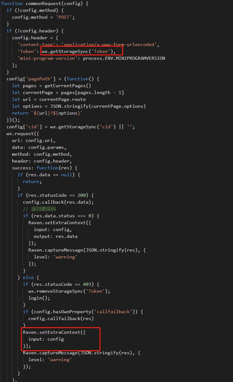 这个是我们的代码,调用方法去缓存里面拿数据,然后请求后台,用sentry收集异常信息,捕获到的错误如下![]()
