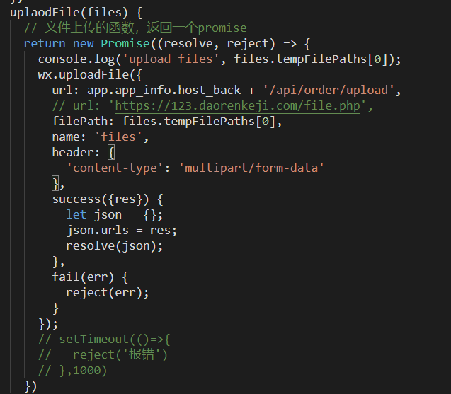 // 文件上传的函数,返回一个promise