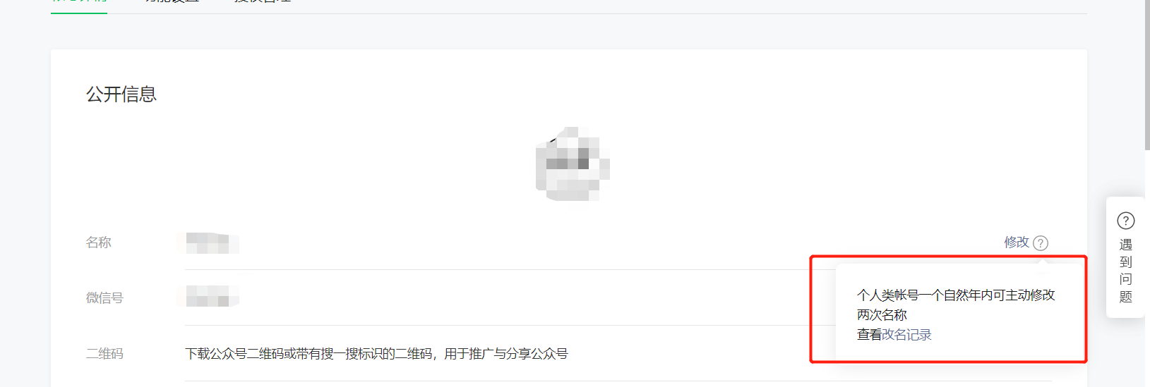 如果您的公众号性质为个人号,直接点击设置里面的【修改】即可。一年可以免费修改两次。
