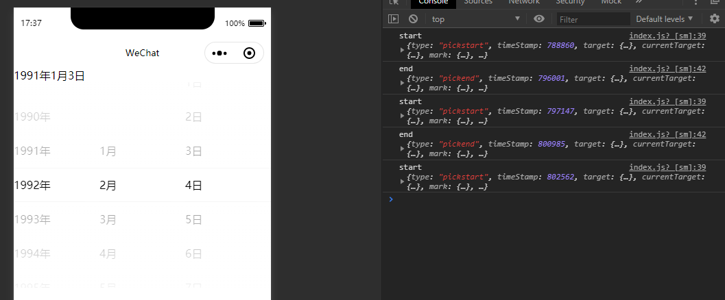 点击但前value的值时,会触发bindpickstart,但并不会触发bindpickend,但官方文档给出的是只有滑动时才触发bindpickstart。就算是点击触发了bindpickstart也应该对应触发一次bindpickend,而且重复点击当前value值也并不会重复触发bindpickstart。