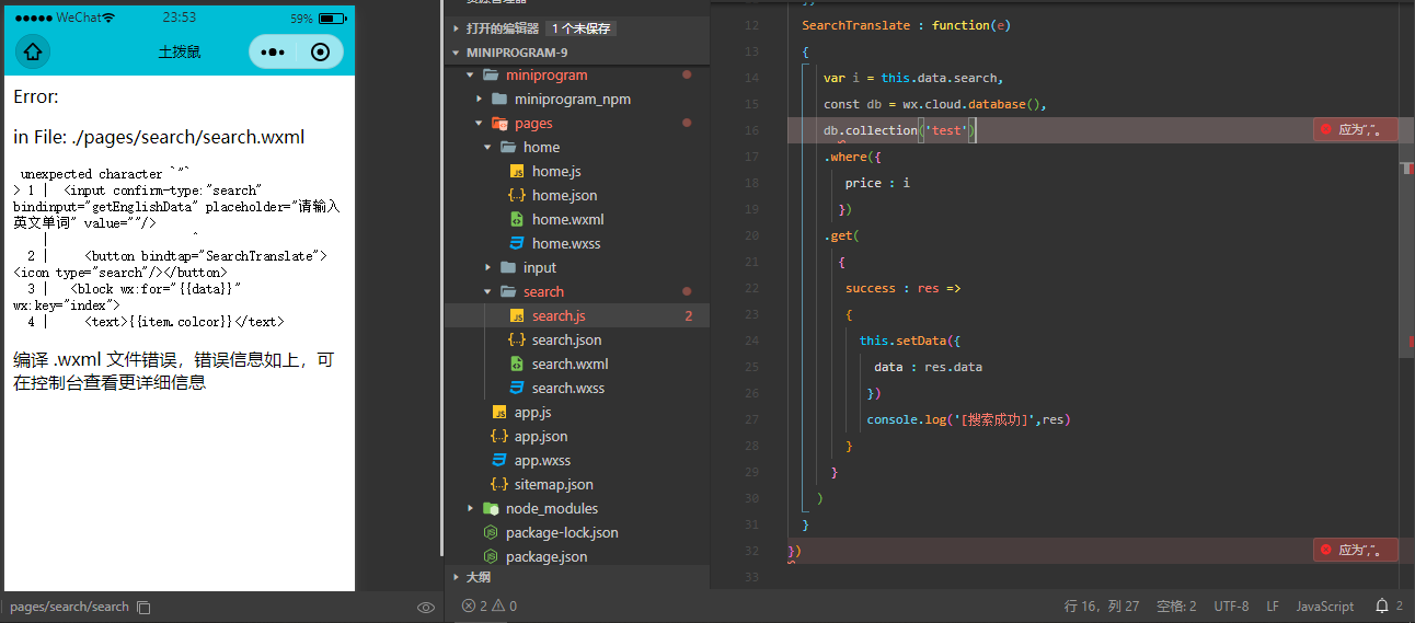 格式不对,js里的错误你把最后的}放到})后面试试看,xml3处格式不对,建议看一下相关教程啊