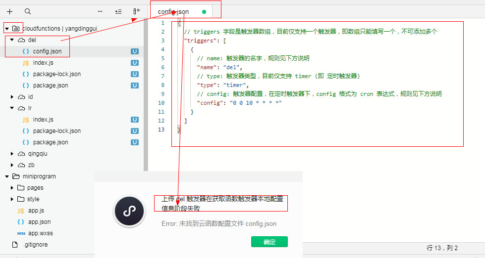 上传 del 触发器在获取函数触发器本地配置信息阶段失败