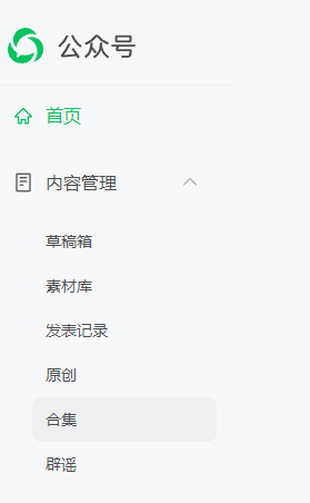 登录微信公众号平台https://mp.weixin.qq.com→内容管理→合集