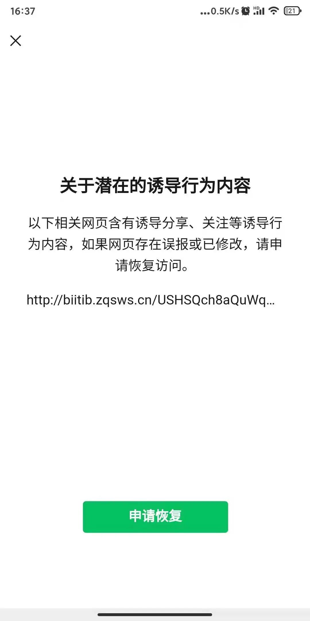刚解析的域名,微信打开就提示停止访问,说是存在低俗暴力内容页面,可以站内根本不存在提示的链接页面,不清楚具体是哪里的问题?麻烦帮忙处理一下!