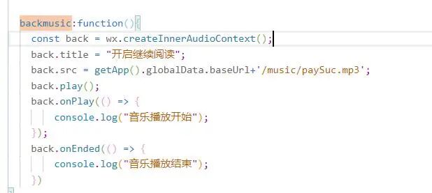 情景描述:单独使用时都可以播放,但是放在调用支付成功success中不起作用。