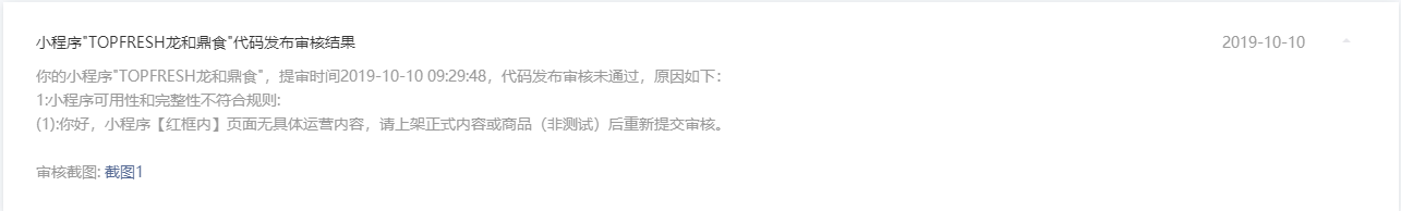 小程序第一次发布的时候通过了,然后我修改了主页的图案,就显示了红框内这个提示,但是审核截图却打不开,不知道问题出在哪里,请指点~