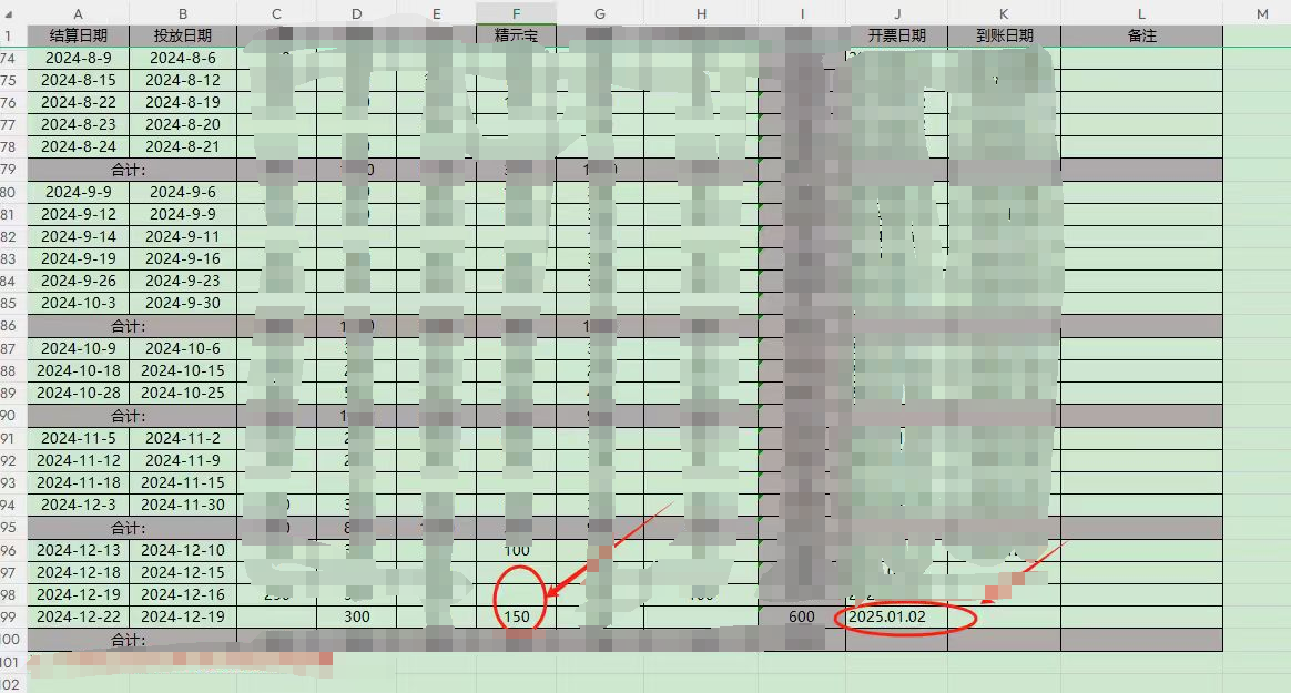 12月19日的一期互选广告,22号结算,1月2号开票,共150元未到账,麻烦后台帮忙查询一下具体问题
