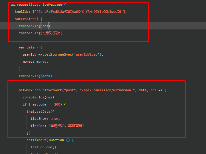 第一部分是调用订阅消息授权 第二部分是我自己后台的请求地址