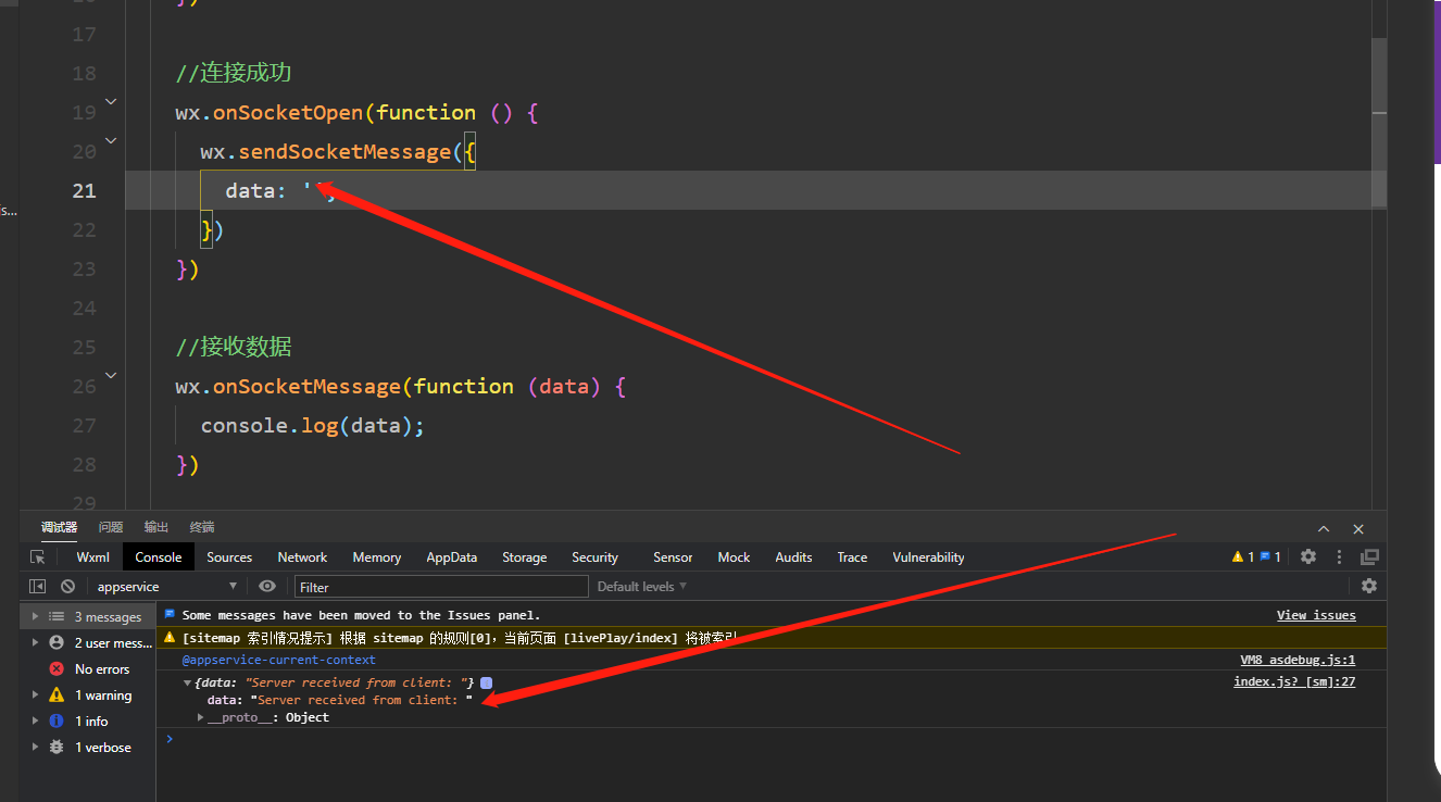只有当wx.sendSocketMessage的时候,才有返回,但是服务器的其他数据就获取不到?请问怎么搞