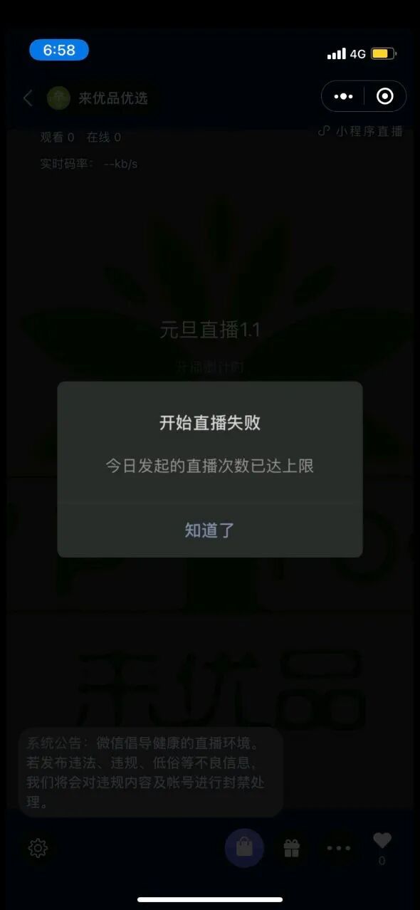 单个小程序每日直播最多50次,APPID:wxa2422916567bade5这个小程序今天已经到达次数了吗?