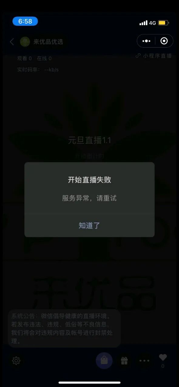 APPID:wxa2422916567bade5 直播无法开播什么情况?