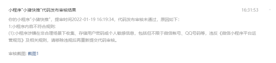 你好,该小程序最新提审版本已于2022-01-27通过代码审核