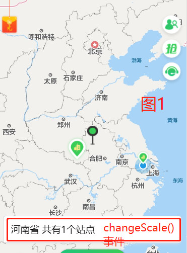 需求:当用户把地图缩放到图1时,地图会在每个省份上有个点(前提是如果该省有我们的产品),点击省份的点,地图会放到到图2的样子,在点击,地图会所放到图3的样子,即正确的顺序是从图1->图2->图3.图6是实现地图缩放的代码,这些功能在开发工具上都可以实现。但是在真机会出现很多无法预料的问题