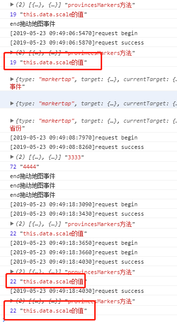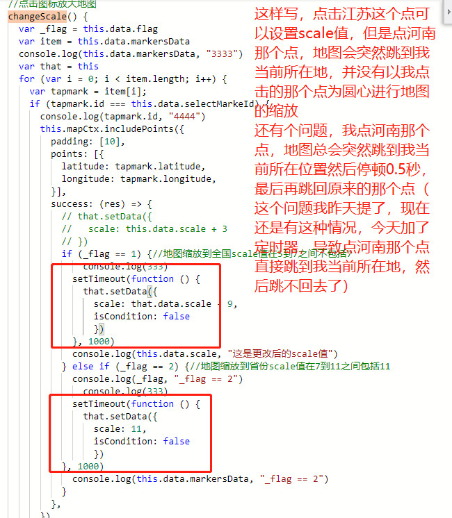 你这里只能通过延时来处理,因为缩放视野展示所有经纬度是一个animation的动作,在完成动画以后才会去写scale属性。