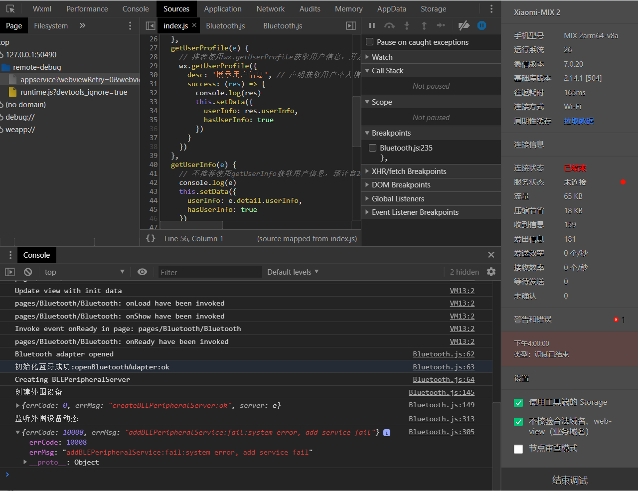 蓝牙广播真机调试添加服务大概率是失败的,成功次数很少