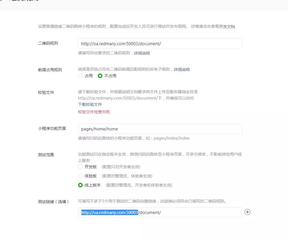 小程序二维码问题,浏览器上是可以找到文件的,不过在校验文件检查失败,麻烦大神帮我看看是什么问题,请指教。