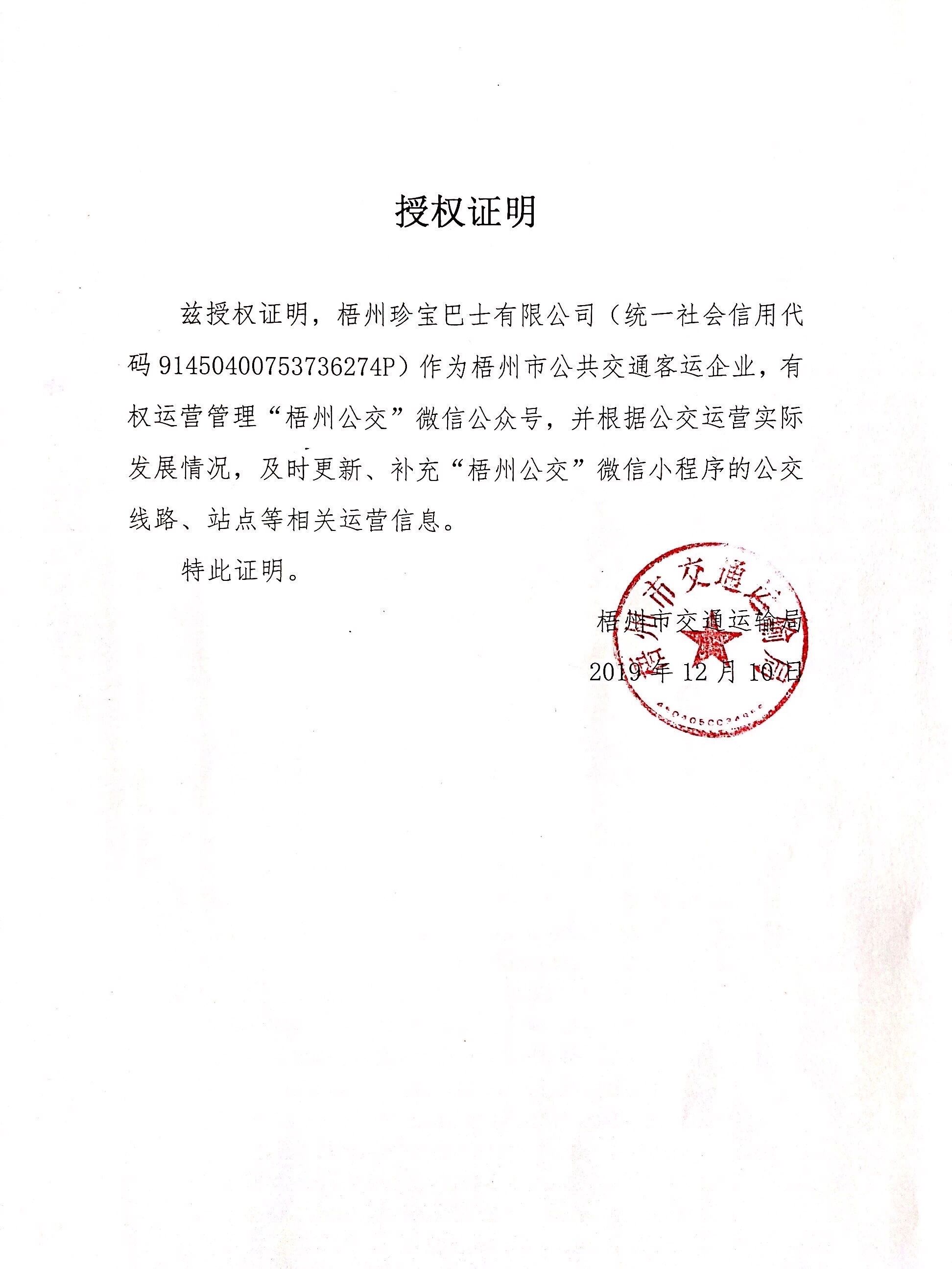 审核不过,发邮件又不回,只能发这里了,这边已经取得梧州市交通运输局盖章授权,允许我公司更新“梧州公交”小程序