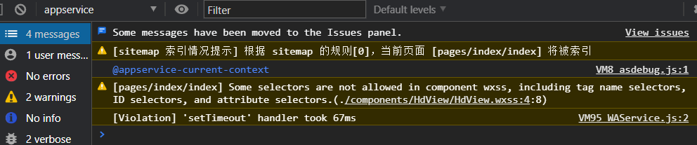 微信开发工具console.log不显示信息,info和messages都是空的,重写了console.log,也重新安装了工具都没有解决,好像是console.log没有运行,怎么解决?