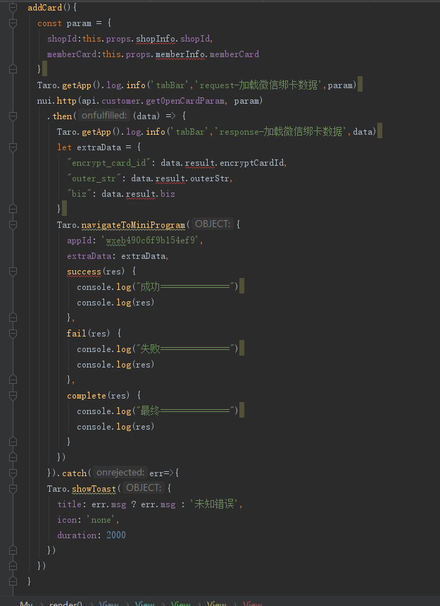 同一张会员卡,H5端调开卡组件是可以正常收到回调,outer_str也正确