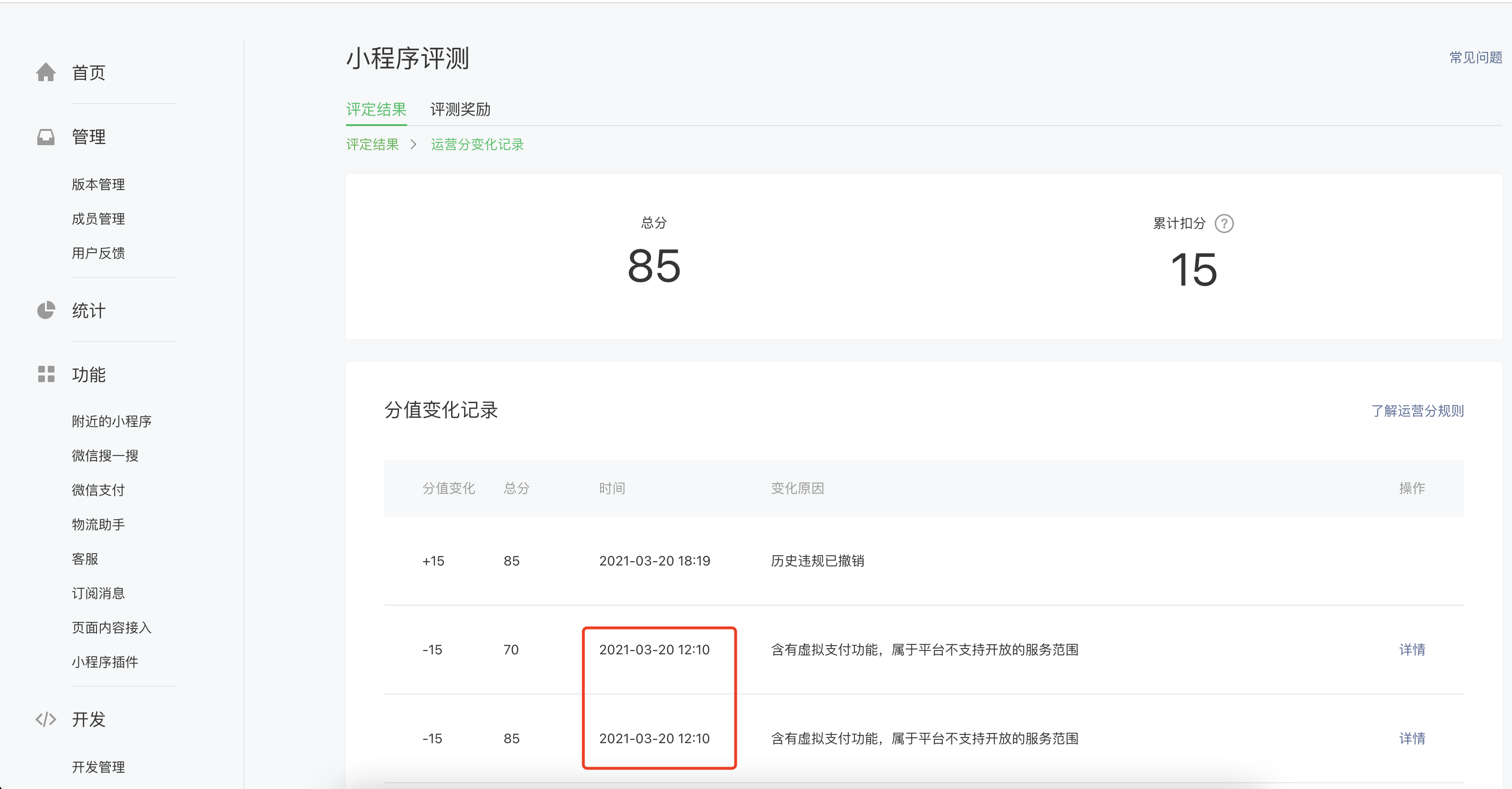 运营分是否存在同一次违规,重复扣分情况?