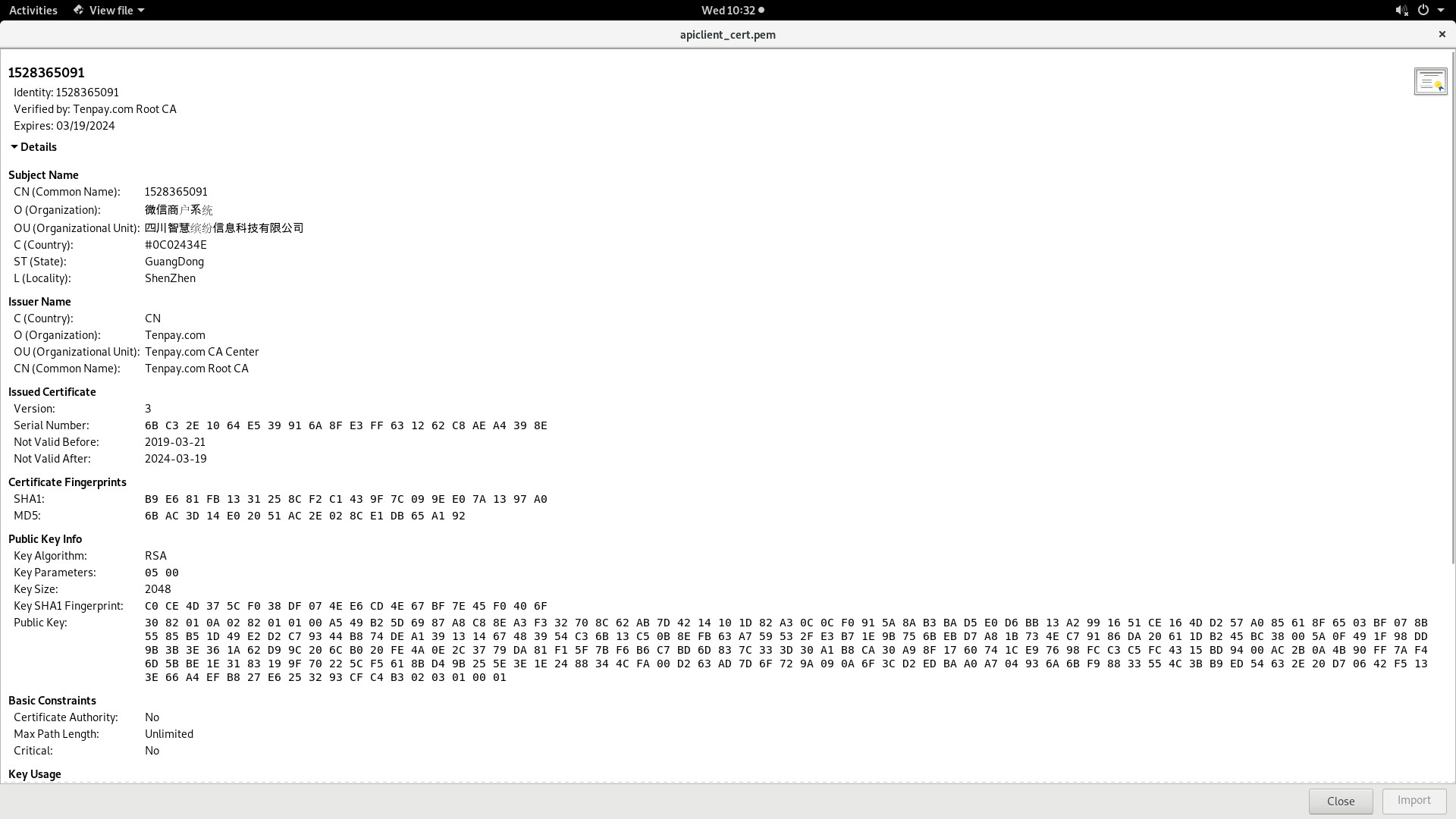 使用的证书:apiclient_cert.pem 和 apiclient_key.pem