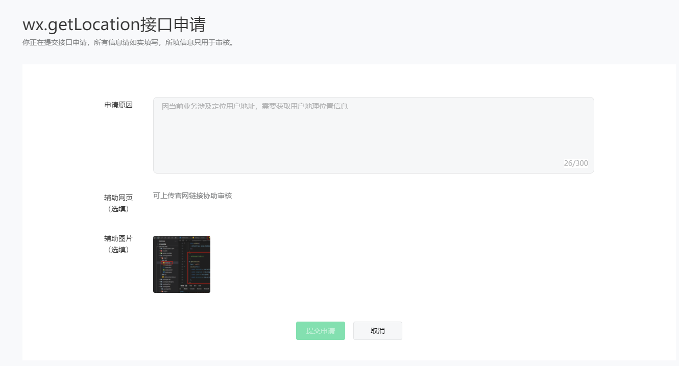 有原因有截图,申请好多次了,一直是申请失效。提示目前未符合接入wx.getLocation(获取当前的地理位置、速度)接口的开放范围审核不通过,建议修改后重新提交。