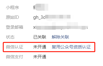 公众号-小程序管理 已关联的小程序-详情-复用资质