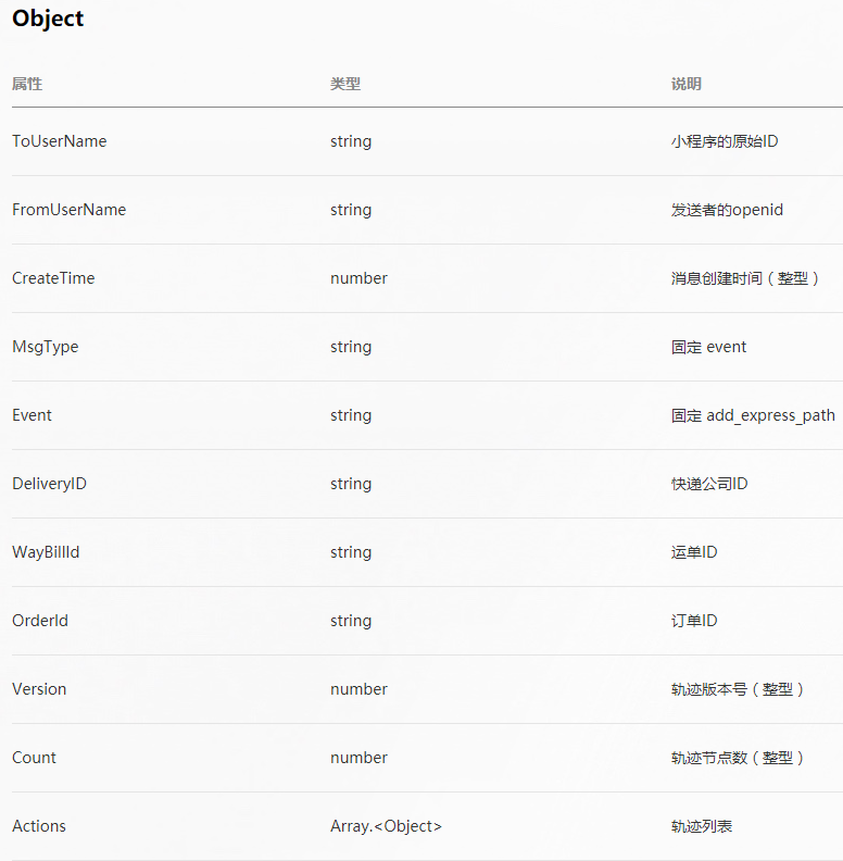 运单轨迹更新事件。当运单轨迹有更新时,会产生如下数据包。收到事件之后,回复success或者空串即可。