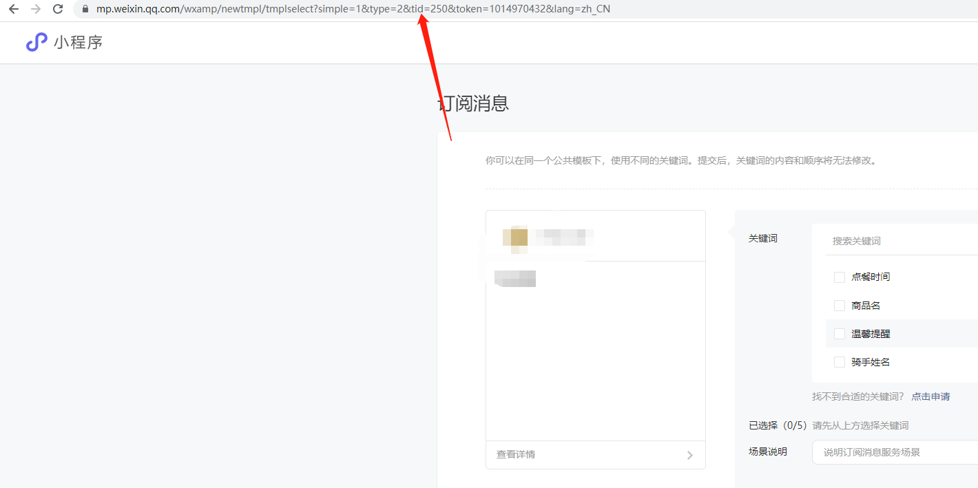 具体步骤就是 到消息订阅,然后选择具体模板,然后看浏览器上的链接。