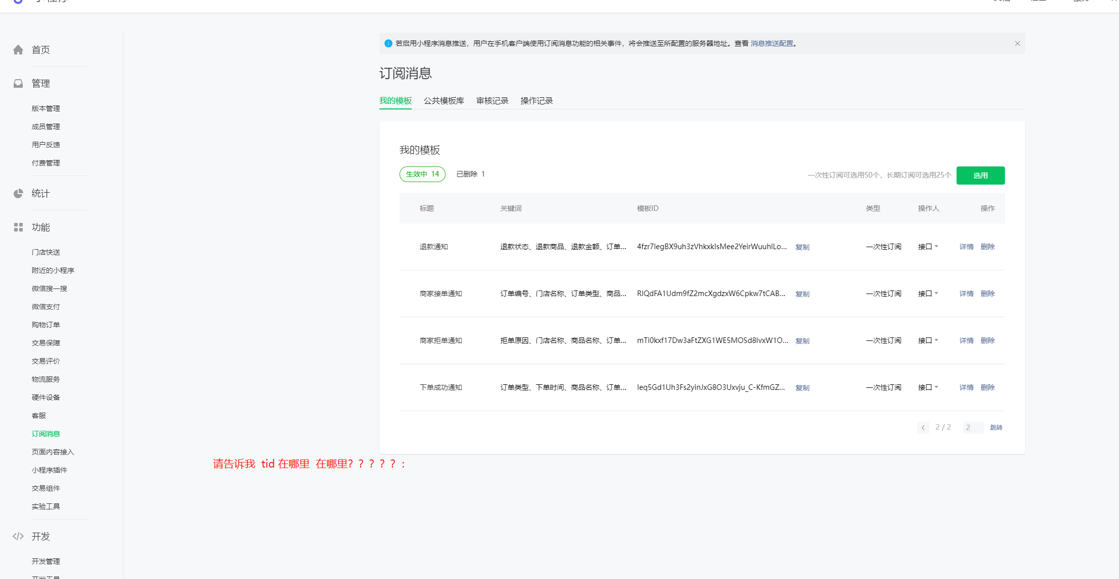 TID 请问在 小程序 后台 具体的 那个 地方可以查看?