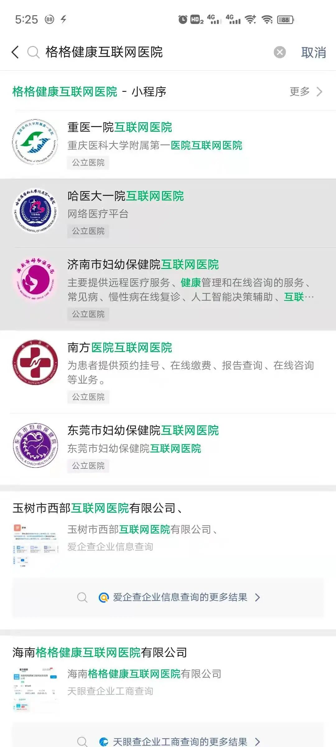 我们公司的小程序是"格格健康互联网医院",用全称无法搜索到,但是用格格健康可以搜到,这是为什么啊,之前都是没问题的,这两天用户反馈才发现.