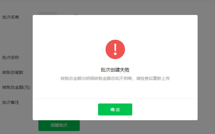 批量转账到零钱核提示转账总金额与明细转账金额总和不相等,核对了好几次总金额都是没问题的,但是提示失败