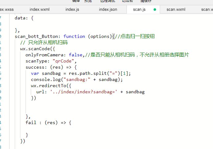 但在小程序启动页面(scan/scan)里面的扫描接口wx.scanCode,获取到了参数,并进行跳转页面(index/index)的时候还是跳到了启动页面,跳不到index页面去!!
