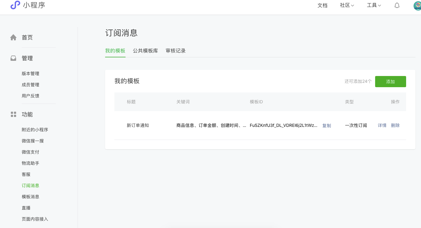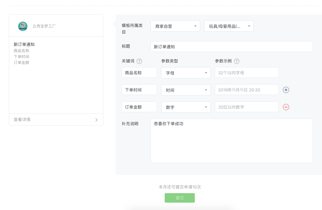 想自己添加一个模板消息,但是提交不了