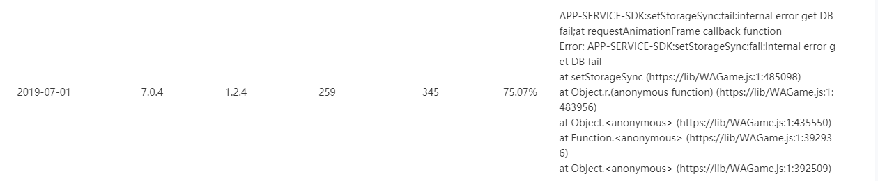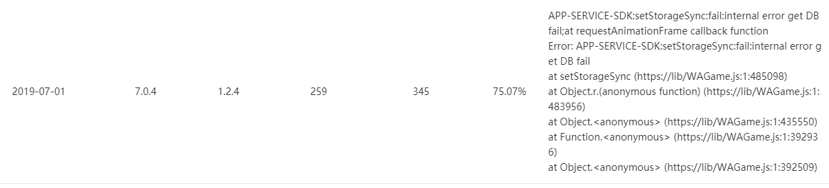APP-SERVICE-SDK:setStorageSync:fail write DB data fail;at api request success callback function construct@[native code] r@https://lib/WASubContext.js:2:549712 n@https://lib/WASubContext.js:2:639600 https://lib/WASubContext.js:2:1185621 r@https://lib/WASubContext.js:2:1186085 setStorageSync@https://lib/WASubContext.js:2:1187047 https://lib/WASubContext.js:2:1185944 https://lib/WASubContext.js:2:1189329 https://lib/WASubContext.js:2:835859 https://lib/WASubContext.js:2:475924 https://lib/WASubContext.js:2:1361742 https://lib/WASubContext.js:2:1361872 https://lib/WASubContext.js:2:427081 set@https://miniprogram:///vendor/wafer2-client-sdk/lib/session.js:10:12 success@https://miniprogram:///vendor/wafer2-client-sdk/lib/login.js:94:25 https://lib/WASubContext.js:2:1361100 https://lib/WAServiceMainContext.js:2:128138 E@https://lib/WASubContext.js:2:423971 https://lib/WASubContext.js:2:851349 https://lib/WASubContext.js:2:478186 Ii@https://lib/WASubContext.js:2:852215 https://lib/WASubContext.js:2:853494 https://lib/WASubContext.js:2:471103 https://lib/WAServiceMainContext.js:2:242288 A@https://lib/WAServiceMainContext.js:2:77824