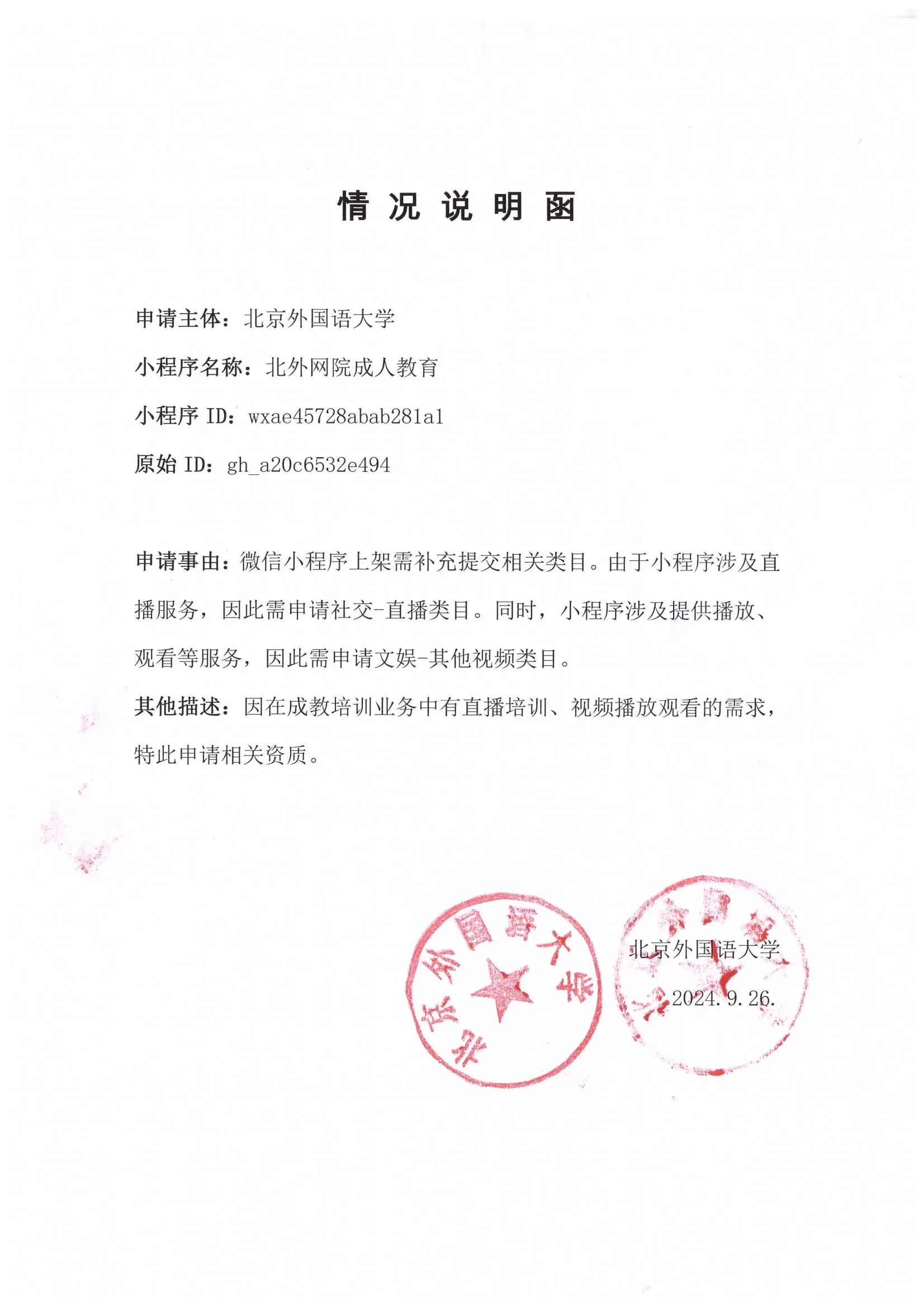 微信小程序服务类目审核《统一社会信用代码》 及 《情况说明函件》(适用于政府主体),其中这个《情况说明函件》