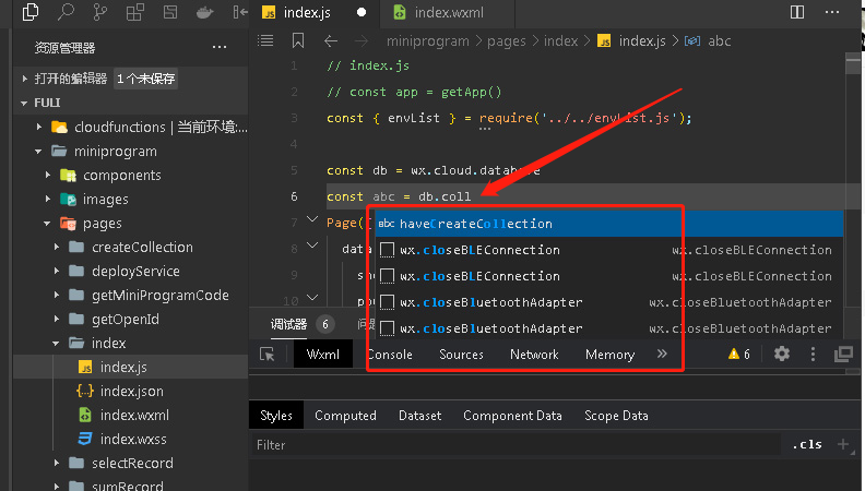 官方和非官方的代码中都有db.collection('xxx').add...,为什么我打不出db后面的collection?还是我的是免费版的,不允许向数据库插入记录?只能更新呢?