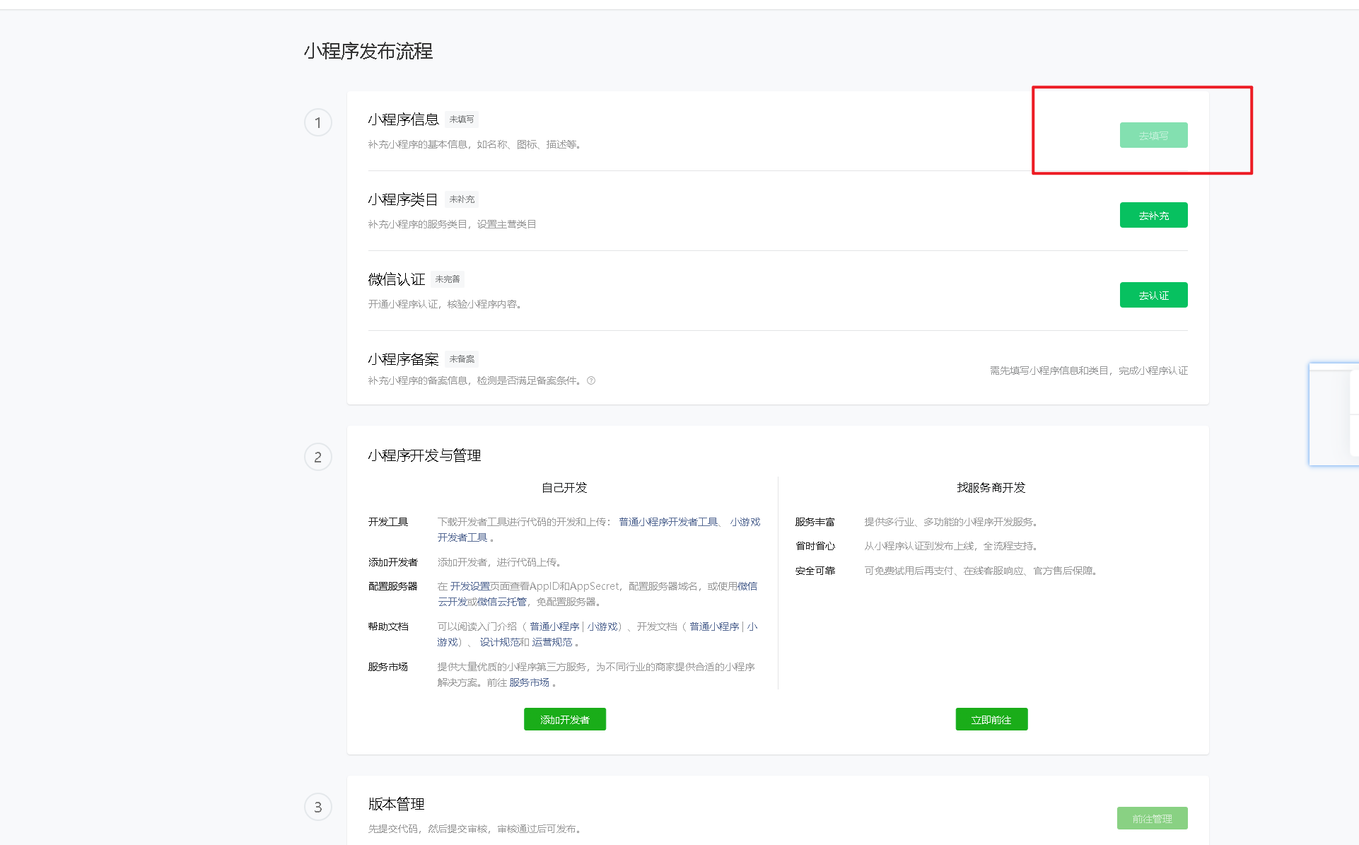 之前的小程序需要设置小程序类目后才可以设置小程序信息;